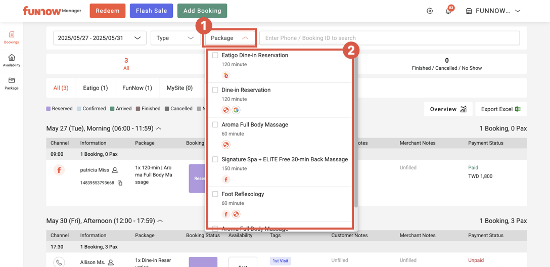 If you only partner with FunNow, Eatigo, or Niceday, this filter will not be displayed.