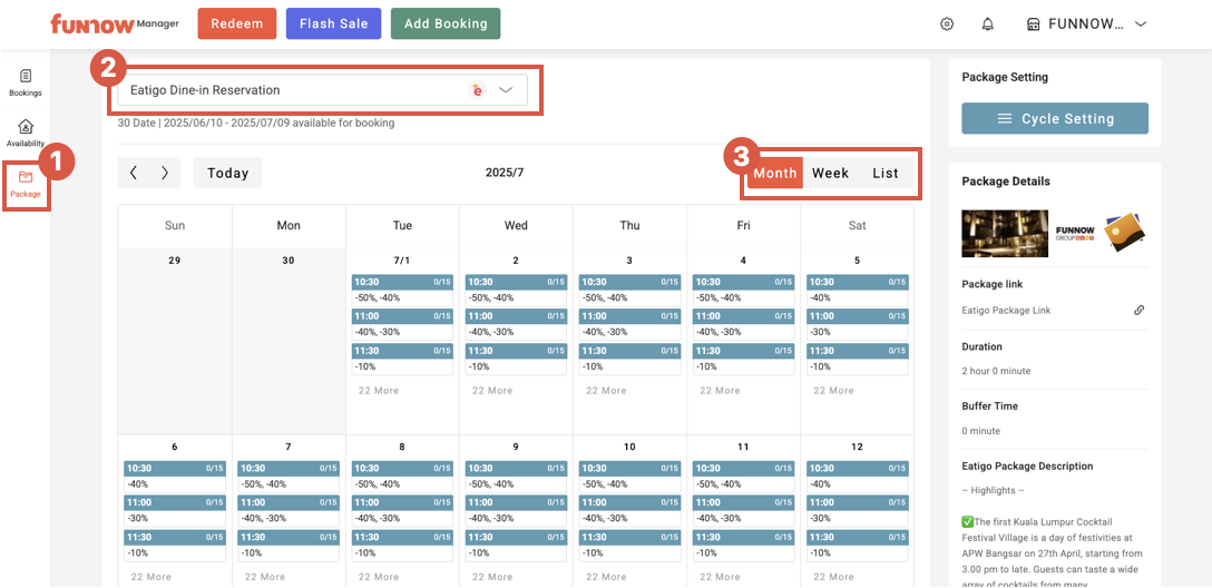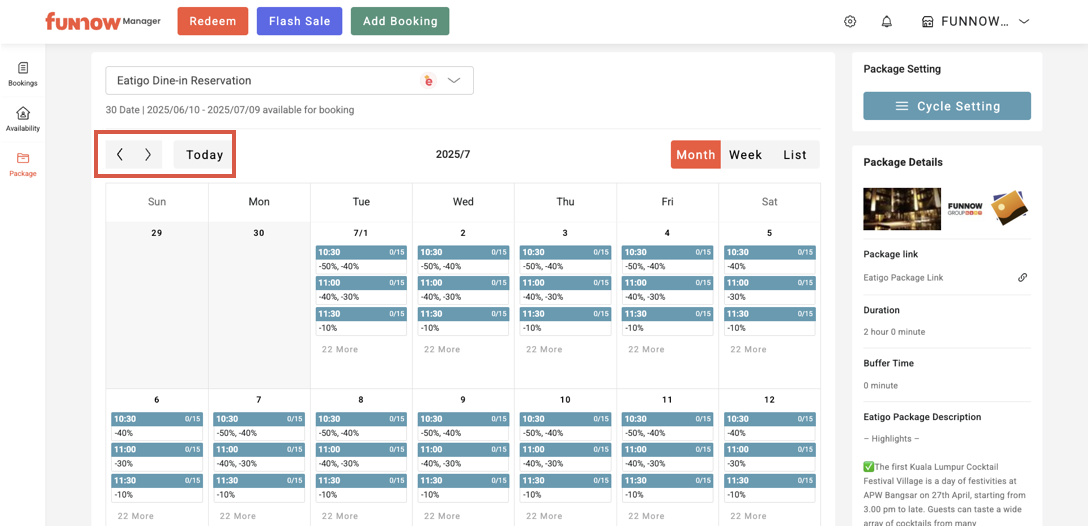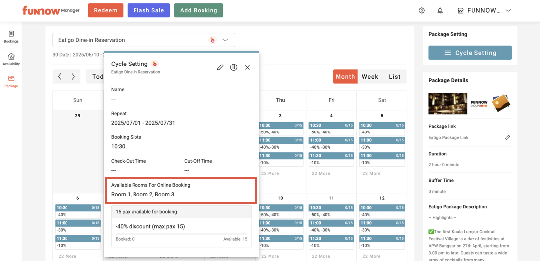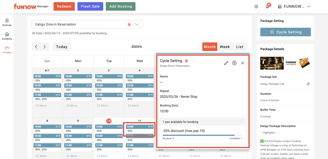 You can directly view the discount and the number of booked pax for each time slot. Click a time slot to expand and see more details.