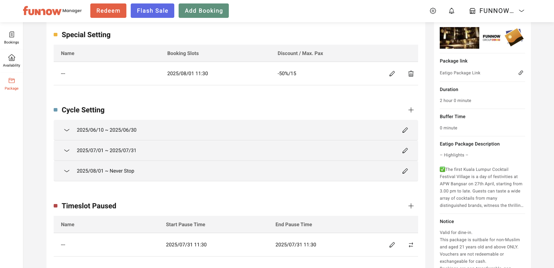 - You can view all Exception YCs (Special Setting), Regular YCs (Cycle Setting), and YC Pauses (Timeslot Paused) in a list format. To see full details of a YC setting, click the desired date range within the Cycle Setting section.