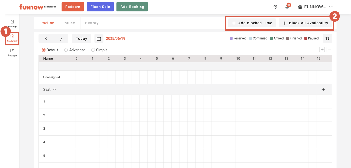 - Add Blocked Time: Flexibly select specific time slots and availability to be blocked.