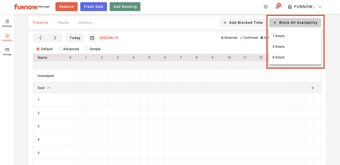 - Block All Availability: Instantly block all availability in the entire branch for 1, 3, or 6 hours starting from now.