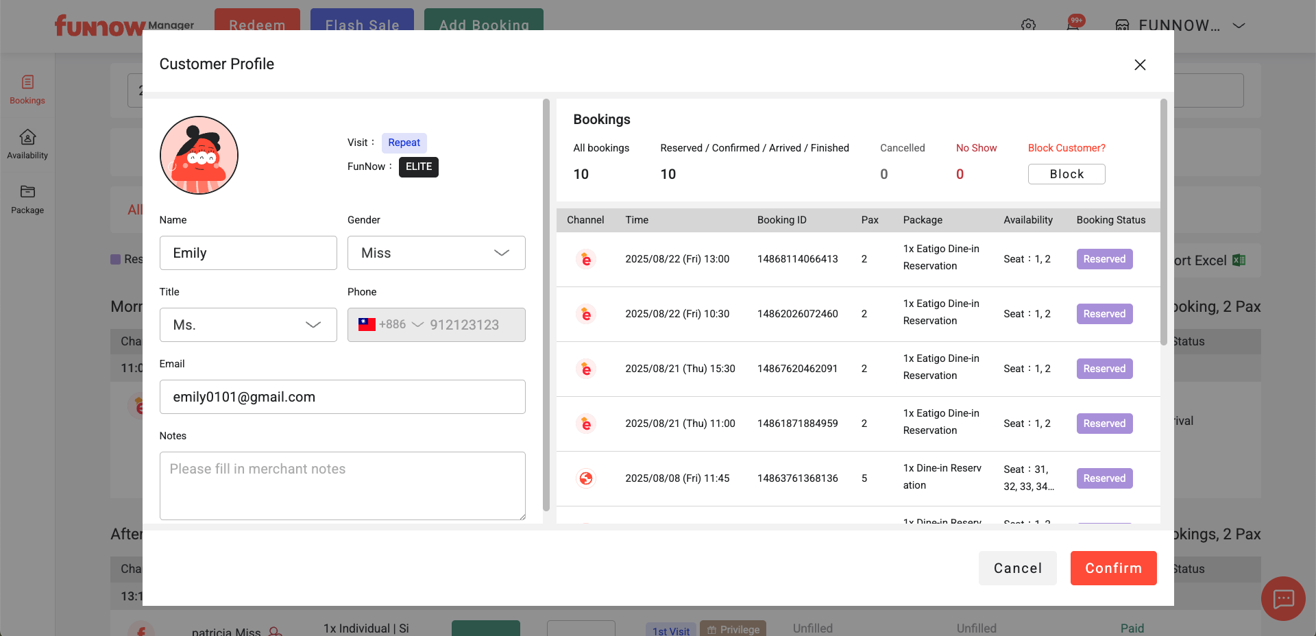1. Navigate to the "Bookings" page.