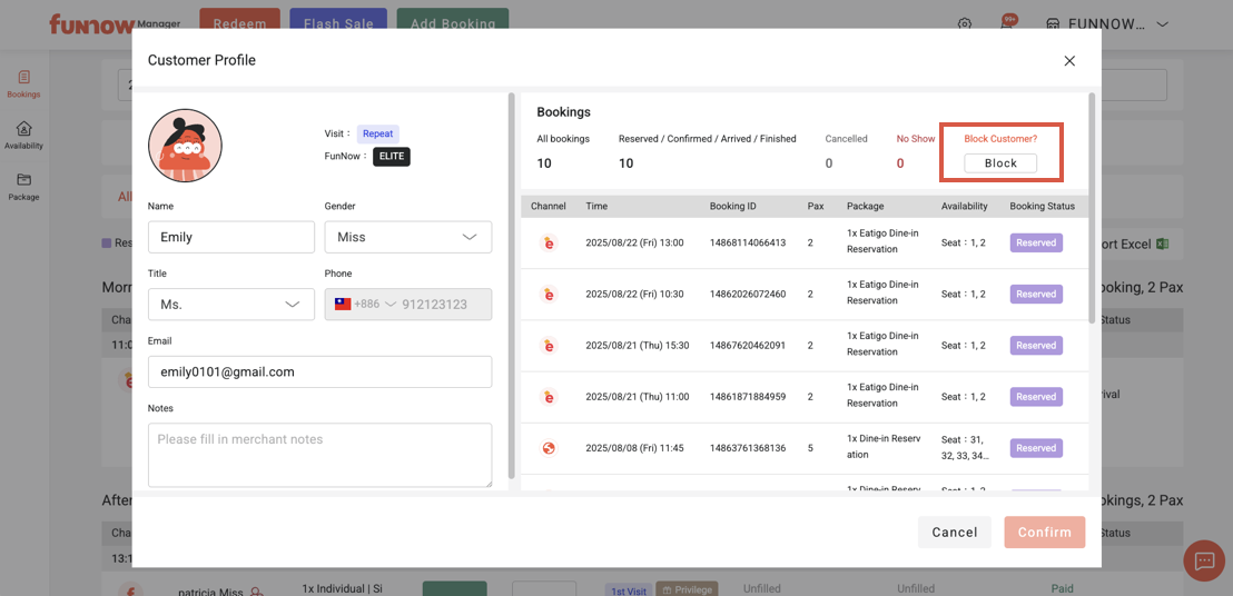 2. Eatigo: Once you click the "Block" button, both the customer's member ID and phone number will be blacklisted.