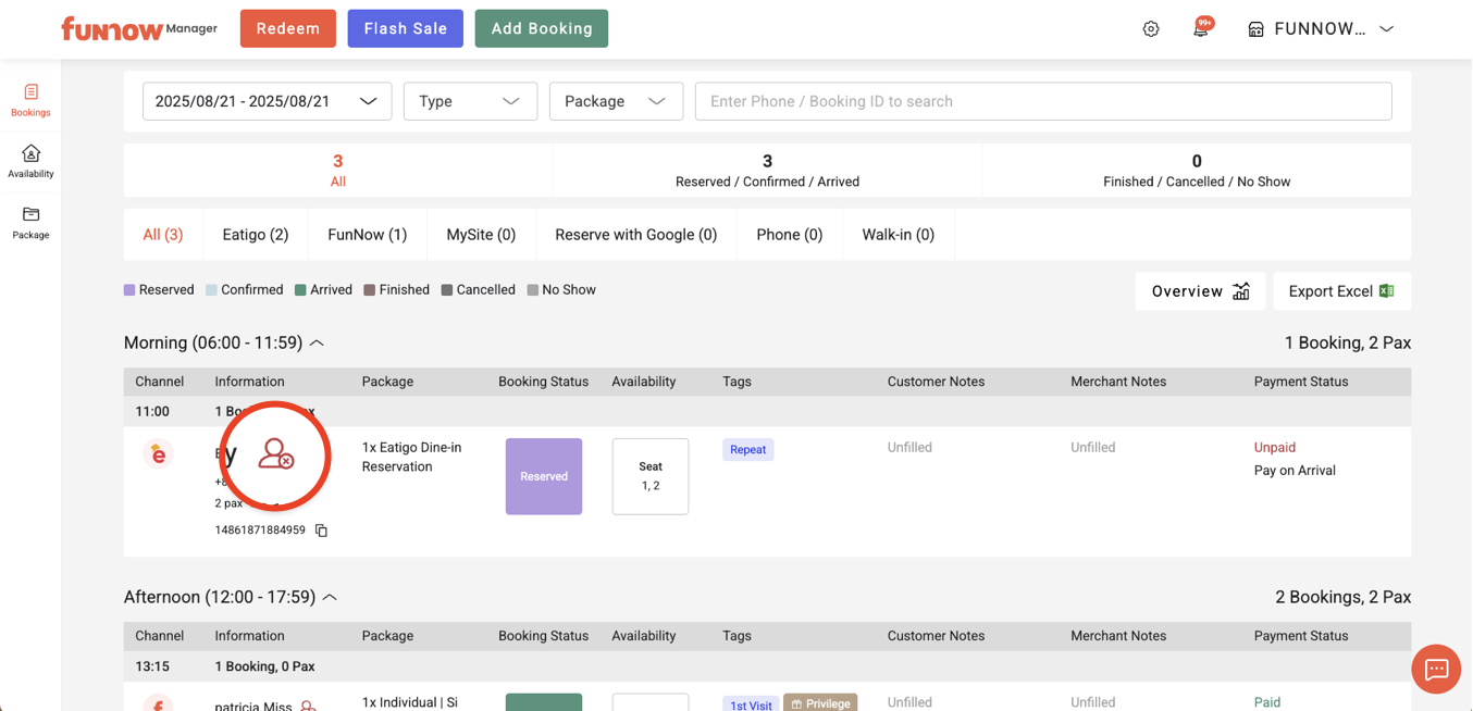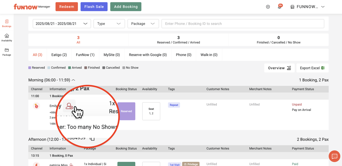- When you hovering over the icon, the system will display the customer’s blocking reason.