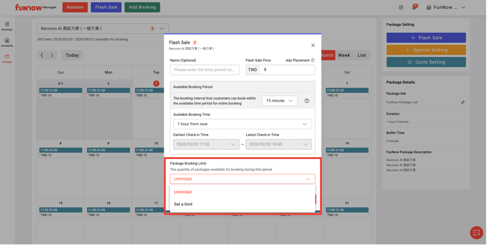 4. Select package booking limit