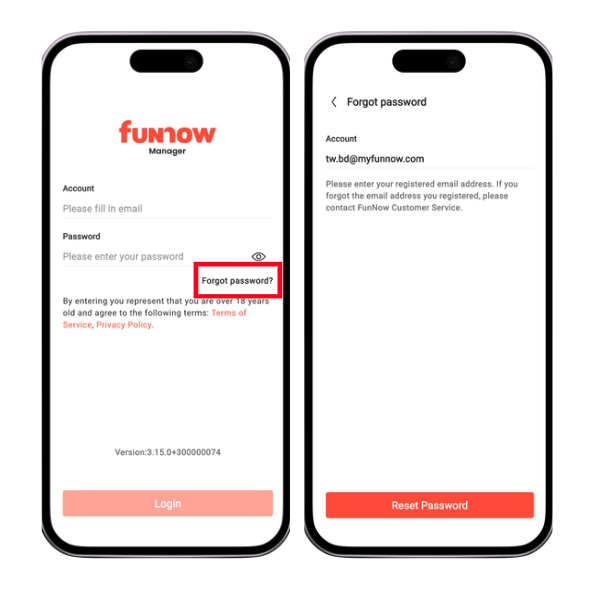 1. Click on "Forget Password".