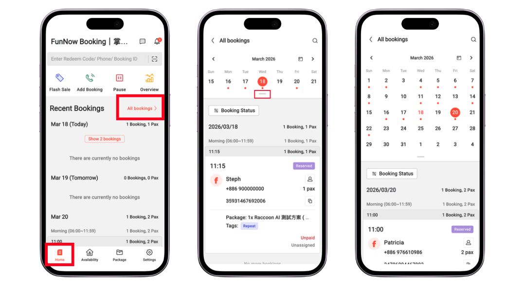 1. Go to the "Home" page and select "All Bookings"