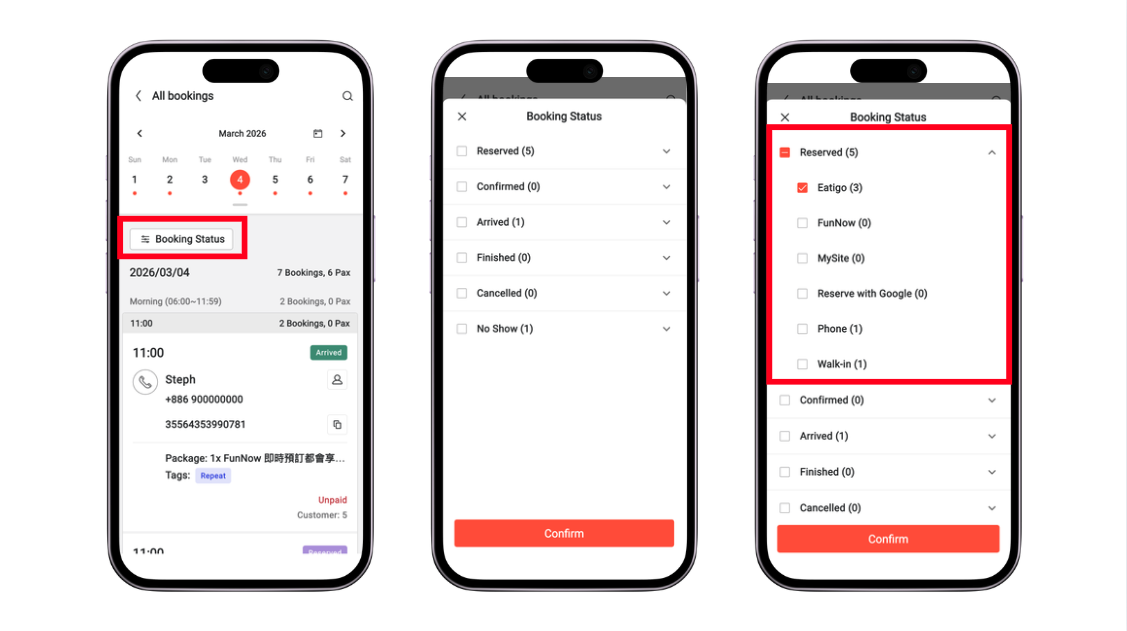 1. Filter by Booking Status: Use the "Booking Status" to quickly filter your bookings.