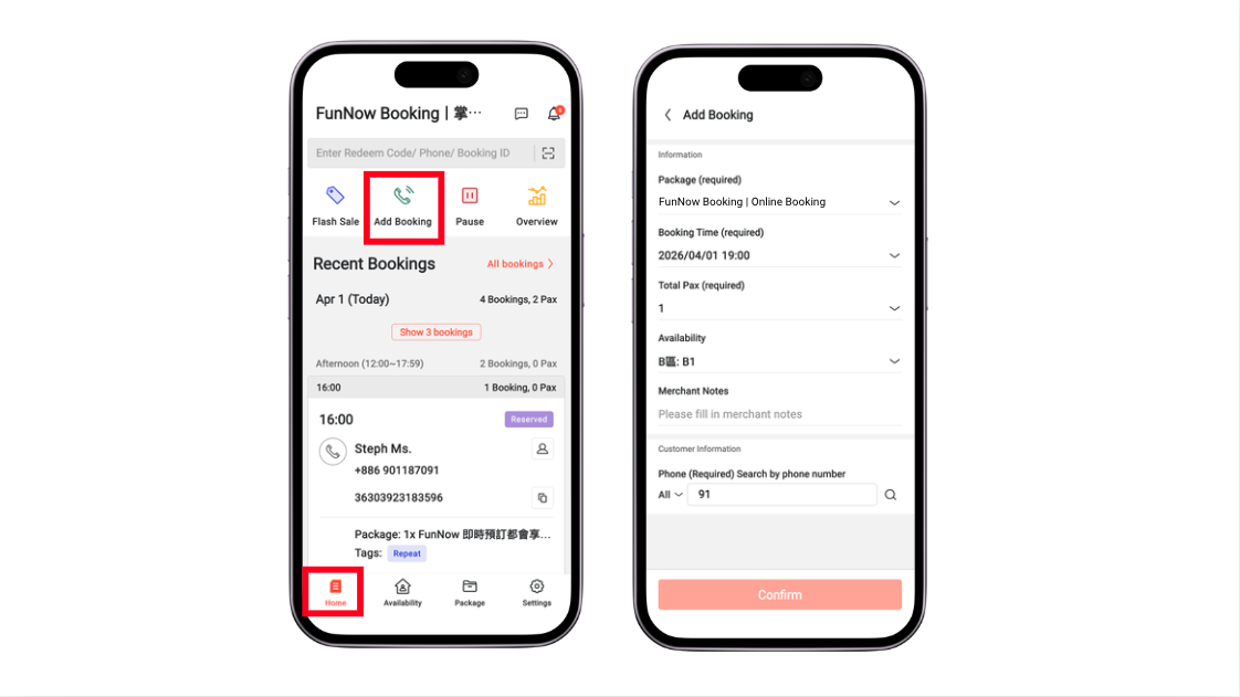 When a customer doesn’t book through your MySite booking link, you can use the “Add Booking” feature to manually create reservations from other channels (e.g., phone or walk-in) in the FunNow Manager system. This allows you to manage all bookings in one place.