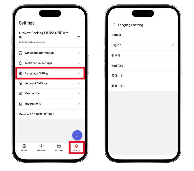 1. Navigate to the "Settings" page, and select "Language Setting".