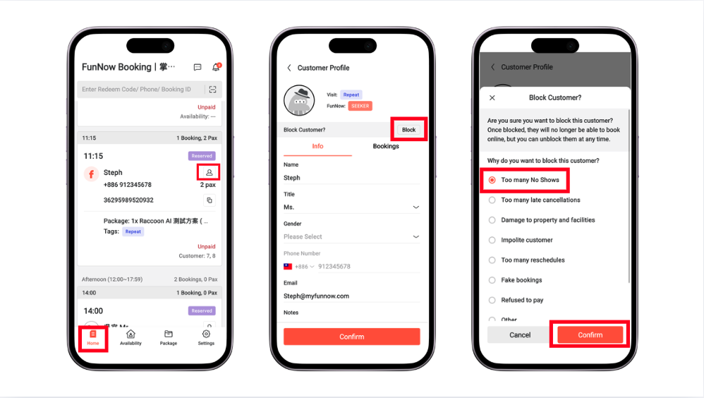 3. You can either select a default blocking reason provided by the system or manually enter the customer’s blocking reason in the Notes section. Once finished, click “Confirm” to save the blocking settings.