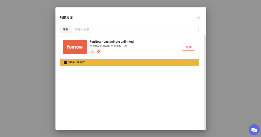 3. 在分店列表中選擇您要操作的分店,然後點擊「選擇」以進入該分店的管理介面