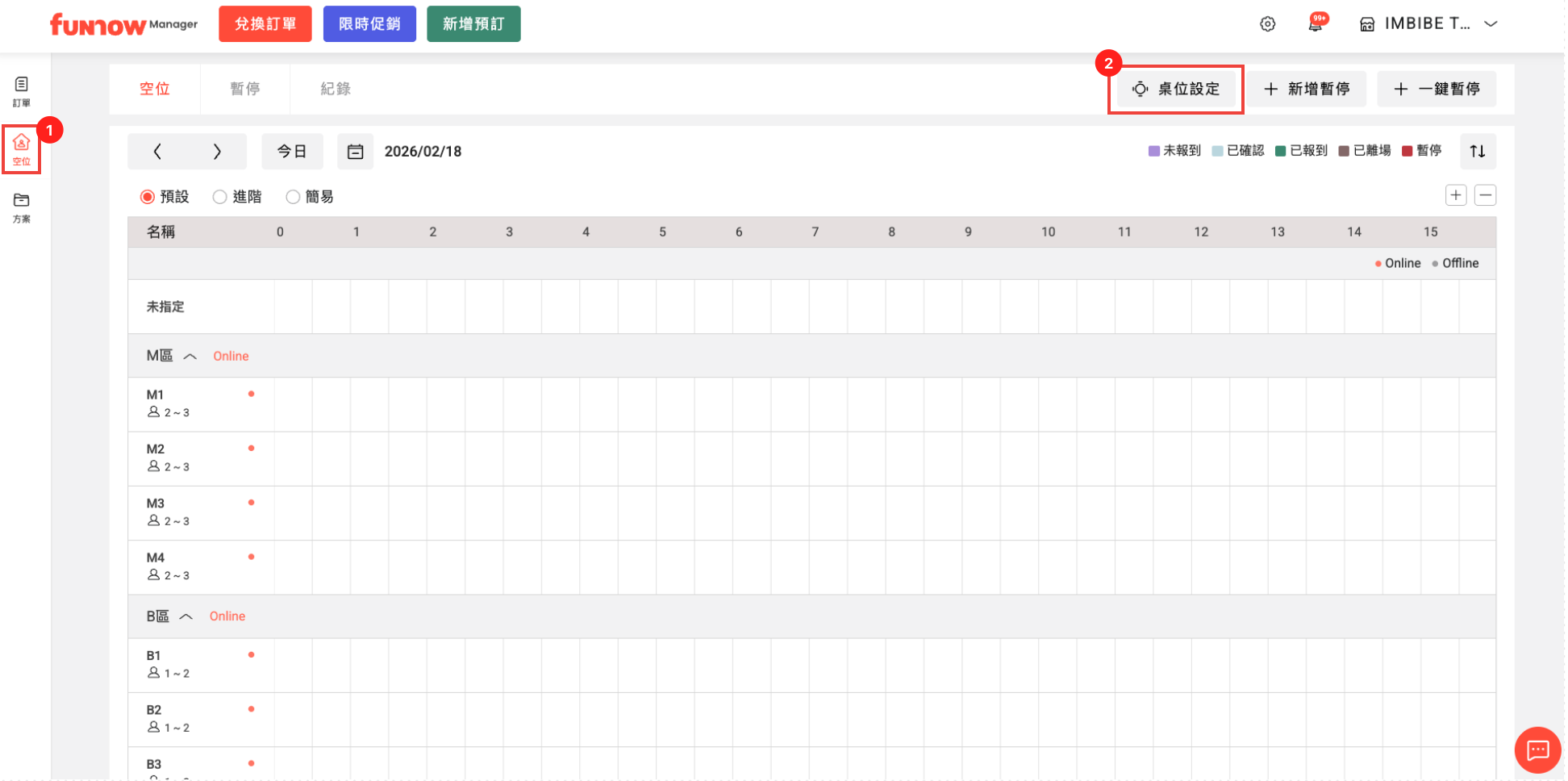 1. 進入「空位頁面」,並選取「桌位設定」