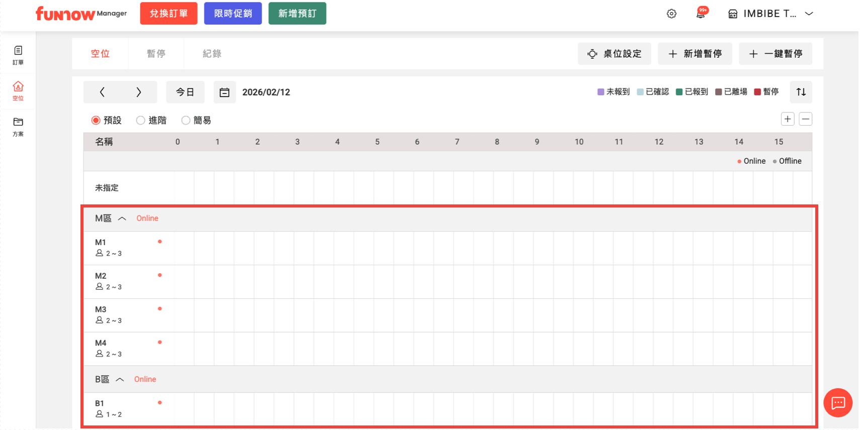 6. 設定完成後,空位條將會以「桌位」形式呈現。
