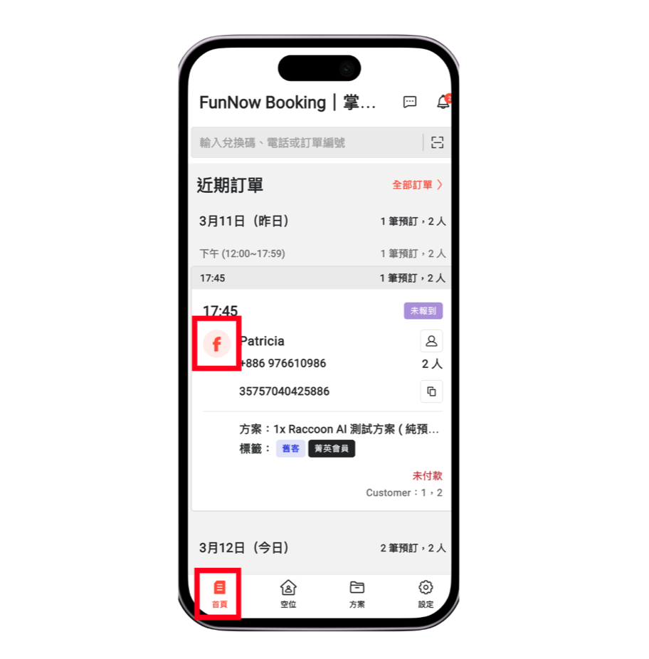 2. 在每筆訂單左側標誌,直接分辨每筆訂單的預訂來源