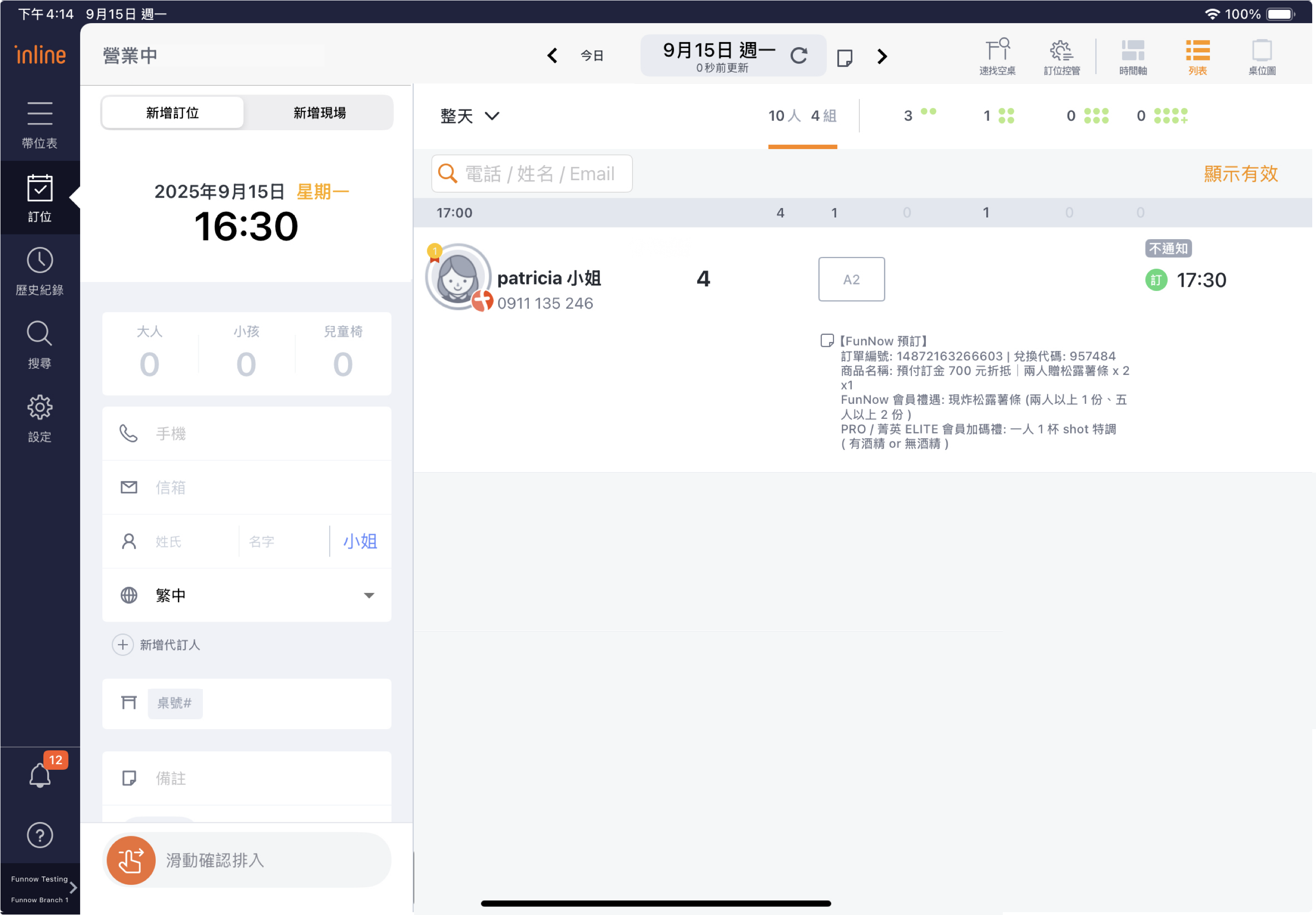4. 刪除後,該筆預訂將從訂單列表中移除