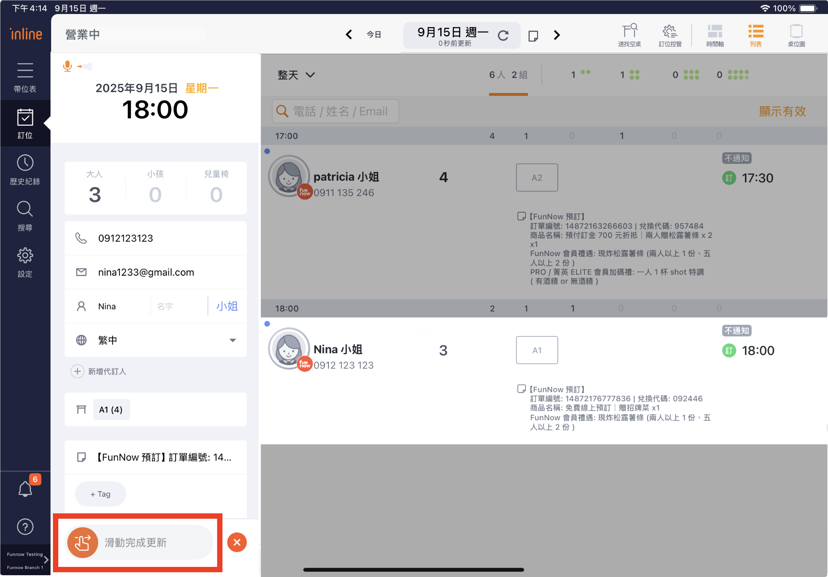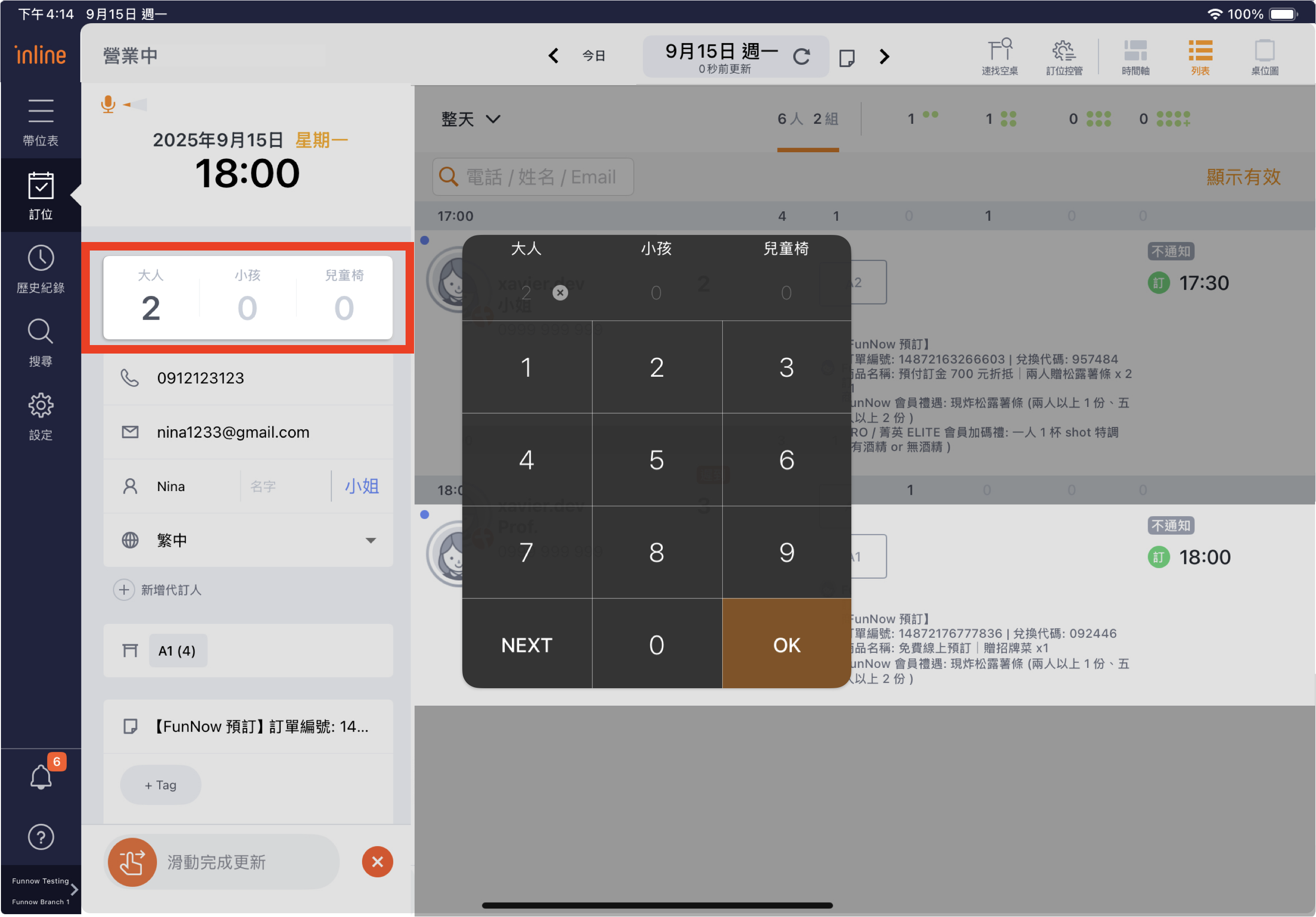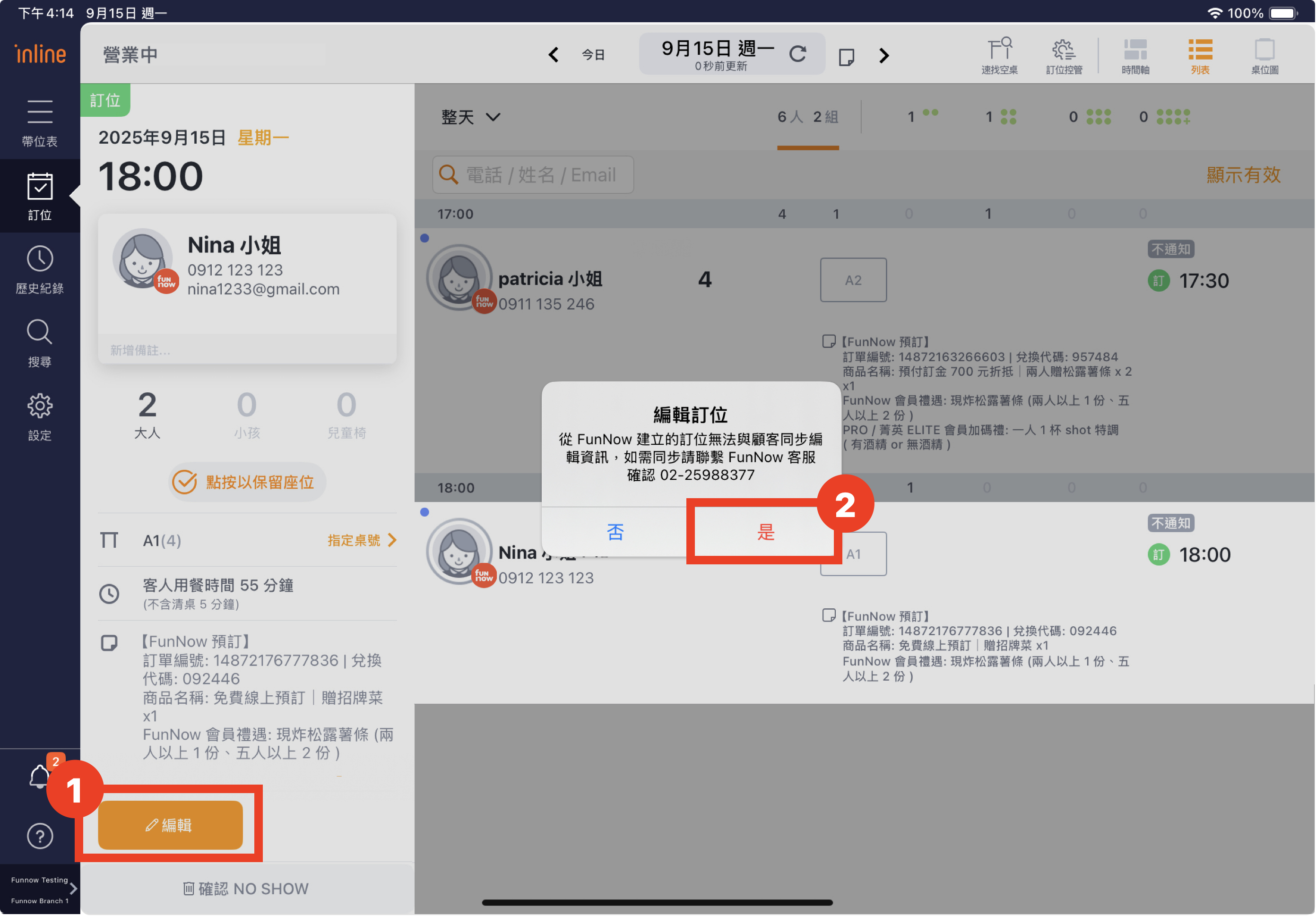 當消費者實際到店人數與預訂人數不符時,您可以使用 「編輯」 功能,更新並記錄正確的實際到店人數。