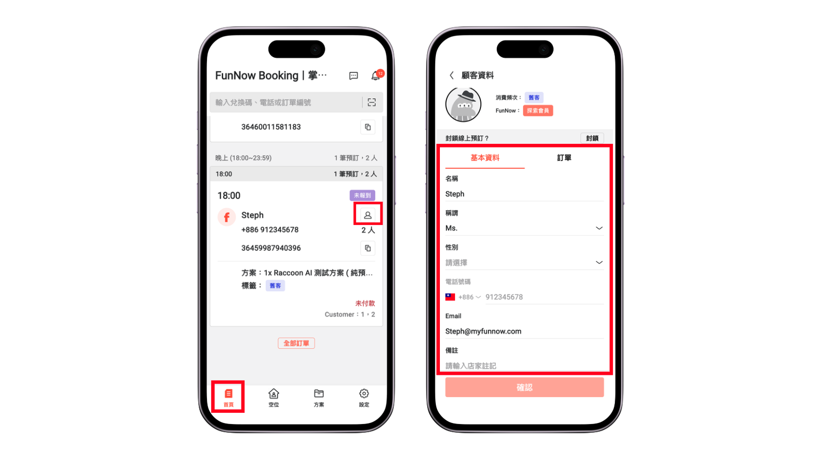 如何編輯顧客資料? 2026年04月08日 08:06 更新於 1. 進入「首頁」頁面,點選訂單顧客名稱旁的小人圖示在基本資料頁面中,您可以編輯消費者的姓名、稱謂、性別及 Email 等基本資訊您也可以利用「備註」欄輸入與該消費者相關的特殊需求或重要事項,方便後續管理與服務。電話欄位為消費者預訂時所填寫,系統會自動紀錄並用於跨平台比對。為確保資料一至性,此欄位不提供手動編輯。若消費者當初未填寫,則顯示為空白。2. 更改完成後,點擊「確認」以儲存變更